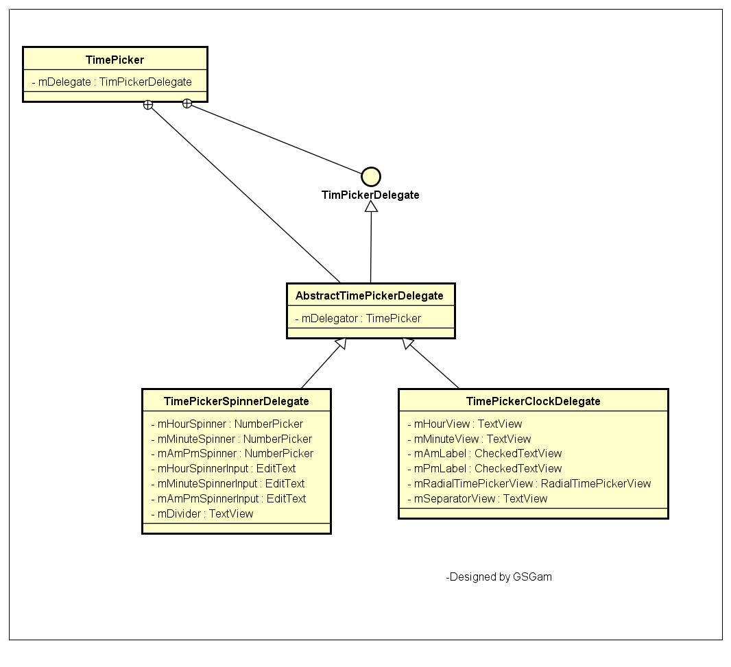 2.以下我再匯總了TimePickerClockDelegate的成員變量,並形成TimePicker的類圖結構