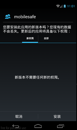 點擊“立即更新”後,會彈出是否安裝新版app的activity界面