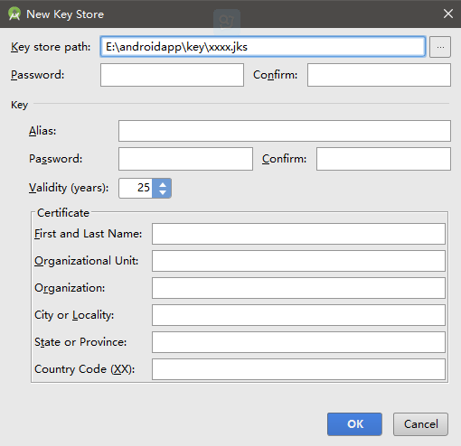 2、出現這個界面,第一次進入的話編輯框都是空的,然後點擊Crete new...按鈕