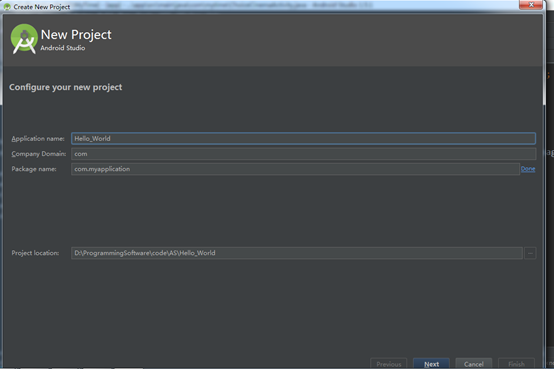 2 、如圖,輸入自己的項目名稱:Hello_World,並選擇自己項目所在的位置,然後選擇“Next”