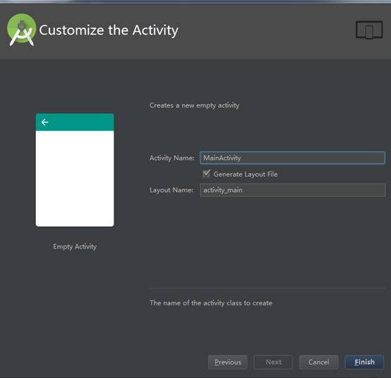5、給生成的Activity命名,然後選擇“Finish”如圖: