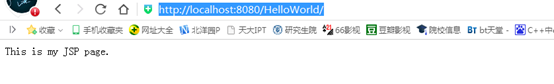 4、啟動Tomcat服務器。然後打開浏覽器,在地址中輸入:http://localhost:8080/HelloWorld/就能浏覽到自己所創建的項目。項目界面如下圖: