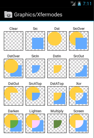 選擇Graphics,接著選擇Xfermodes,如下: