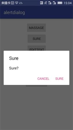 37 .setPositiveButton("sure", null) // 參數1:按鈕名;參數2:監聽器