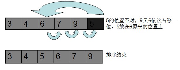舉個例子。就像玩撲克牌的時候,我們每次拿到的是一張不知道的牌,然後順著左手中已經有的牌遍歷,然後找到它正確的位置後插入這張新牌,這時候在這新插入的牌之前的牌的位置是不變的。但它之後的牌的位置都向後依次移動了一位。