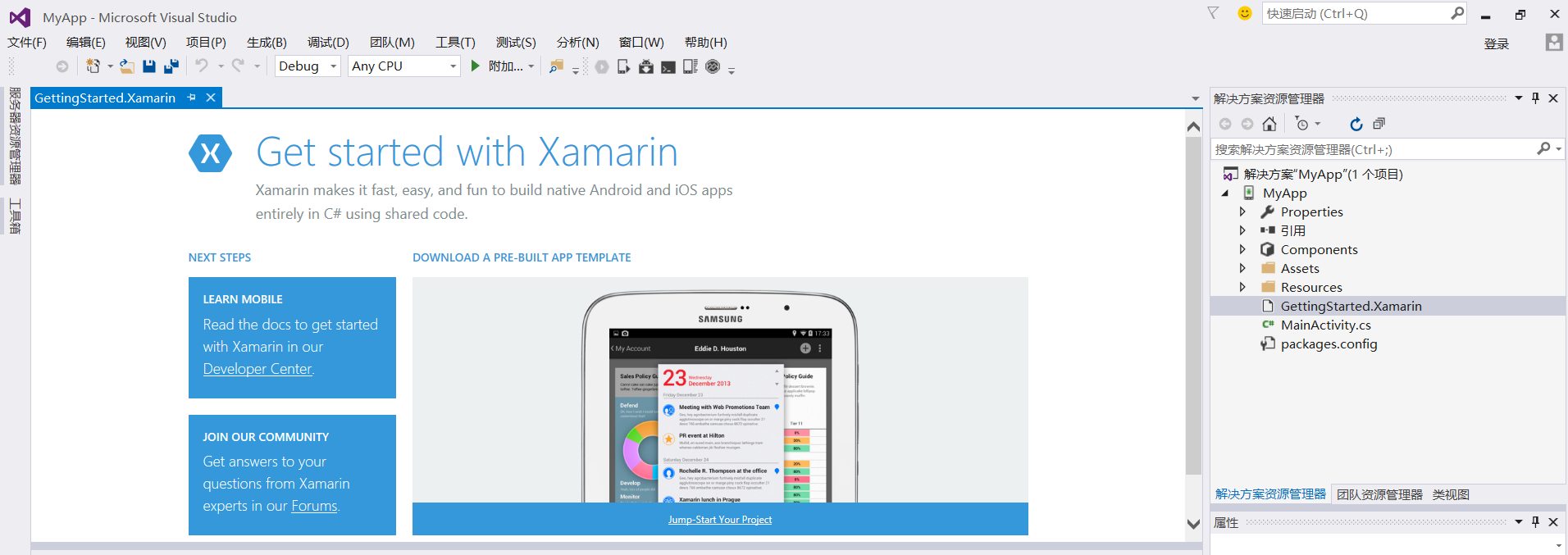 恭喜,已經成功安裝了xamarin,但是離運行還早的很,還有一些東西需要配置