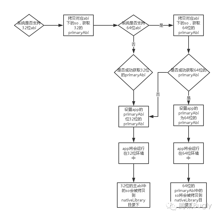 主要的策略就是,遍歷 apk 中文件,當遍歷到有主 Abi 目錄的 so 時,拷貝並設置標記 hasPrimaryAbi 為真,以後遍歷則只拷貝主 Abi 目錄下的 so。這個主 Abi 就是我們前面 findSupportedAbi 的時候找到的那個 abi 的值,大家可以去回顧下。
