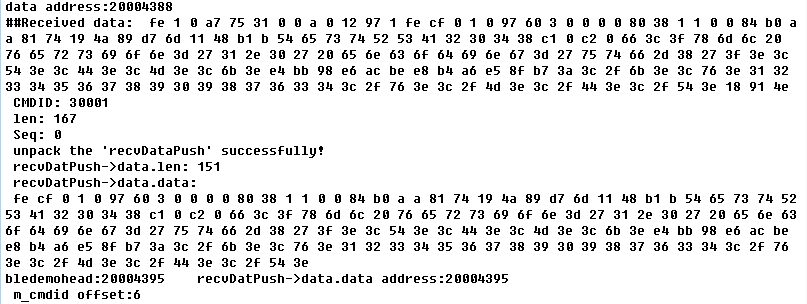 //解包後recvDatPush->data.data就是指向有效數據了即(blueDemoHead+負載 //數據)