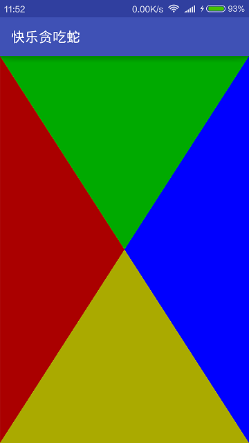 後面我們會在這4個三角形上都畫上相應的箭頭,同樣也有點擊變色的效果哦。敬請期待o(^▽^)o