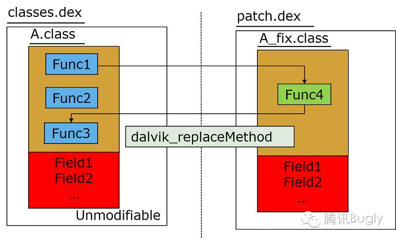 Tinker 的方案來源 gradle 編譯的 instant run 與 buck 編譯的 exopackage。它們的思想都是全量替換新的 Dex。即我們完全使用了新的 Dex,那樣既不出現 Art 地址錯亂的問題,在 Dalvik 也無須插樁。