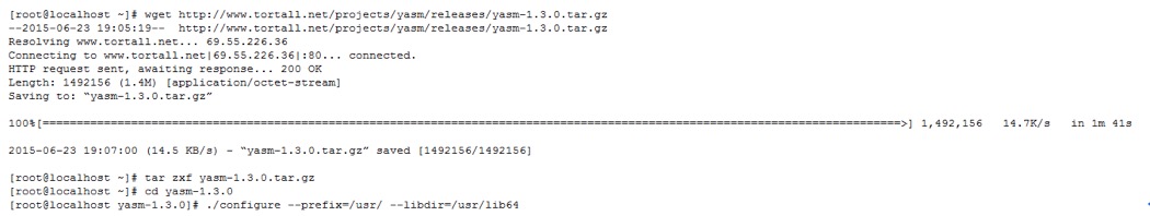 下載yasm匯編器後,configure過後,可以通過make編譯,make install安裝即可;