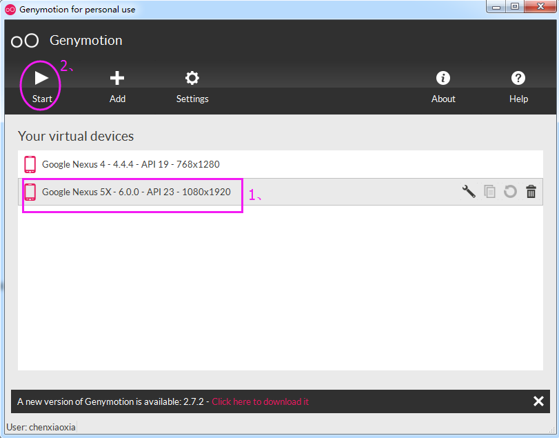 雙擊待啟用的模擬器,或選擇待啟用的模擬器,點擊上方的“Start”即可啟動模擬器。