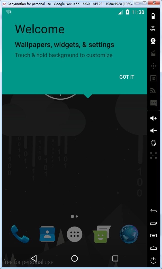 如上圖,模擬器啟動好了,可開始往模擬器上部署你的應用了。