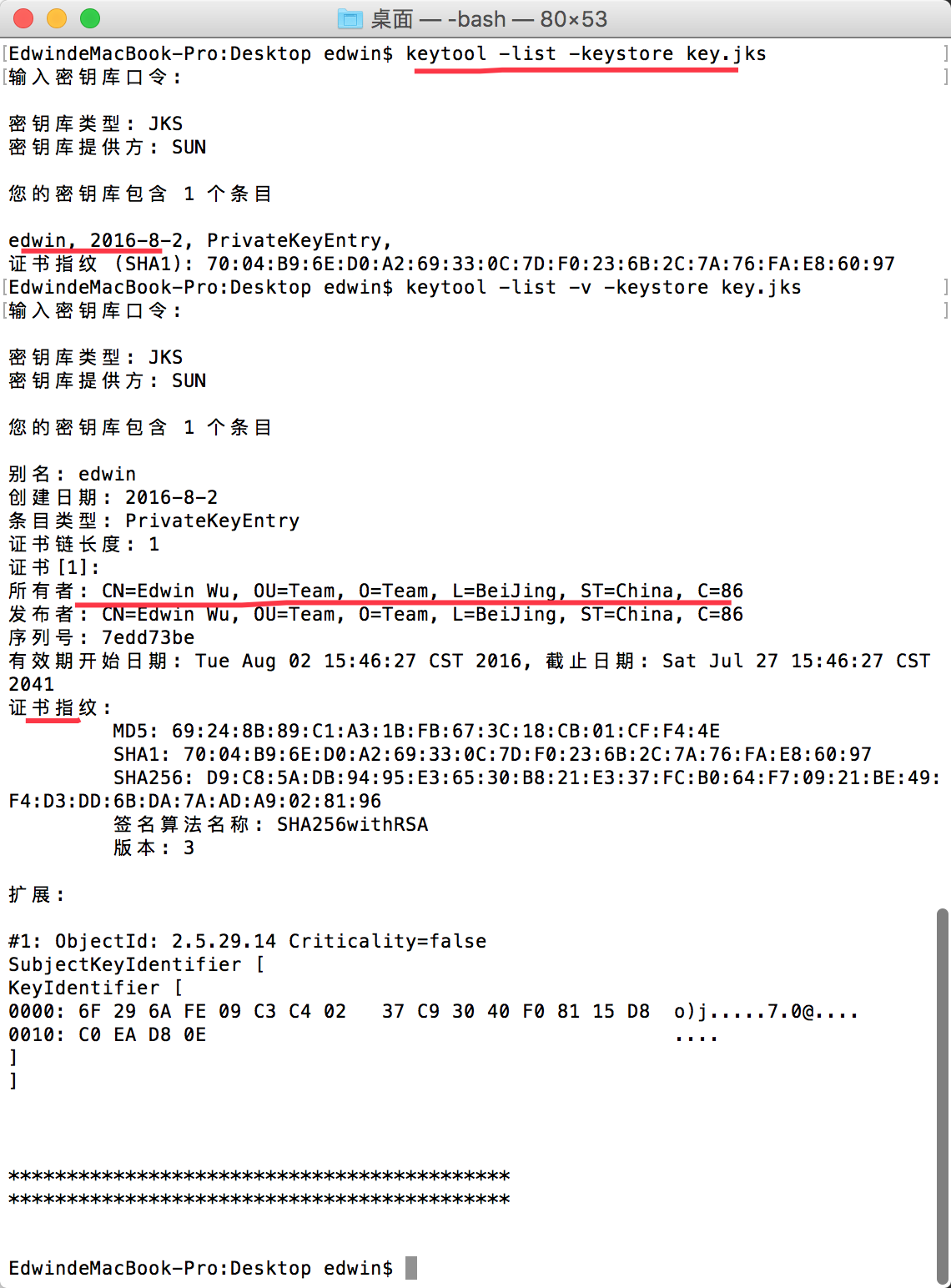 keytool -list -v -keystore key.jks