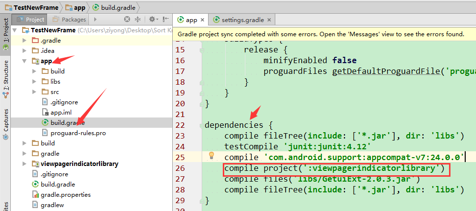 3.app/build.gradle的dependencies裡邊添加:compile project(':viewpagerindicatorlibrary')