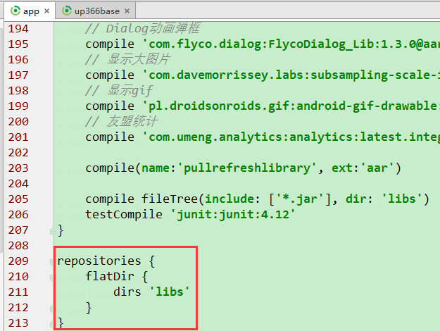 添加:repositories flatDir { dirs 'libs' }}