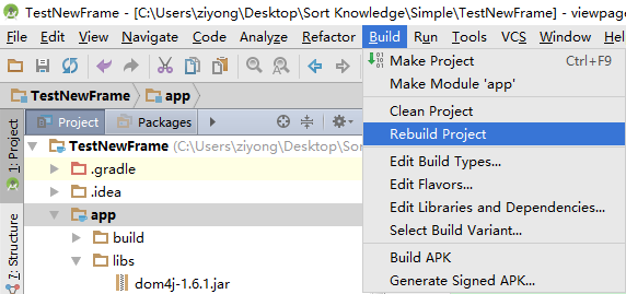 從工具欄依次選擇:"Build"-->"rebuild project"