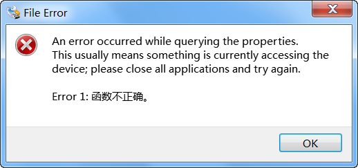 如上圖所示,Win32DiskImager的使用非常簡單,選擇鏡像文件,點擊write按鈕即可。其制作出來的安裝盤與Linux下使用dd命令制作出的基本一致。美中不足的是,程序打開時會彈出一個出錯信息,如下圖所示。選中鏡像文件後,主窗口會最小化。但這都不影響使用。
