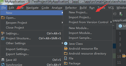 進入AS,左上角單擊File->New->New Project,如下: