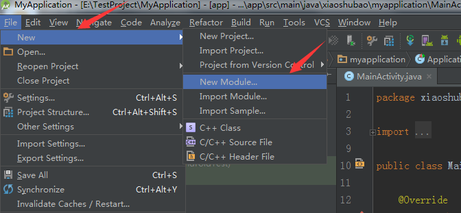 對於中大型項目AS提供了Module(即模塊),主要便於項目分層以及分離邏輯,使項目邏輯更加清晰也便於項目維護。創建模塊如下: