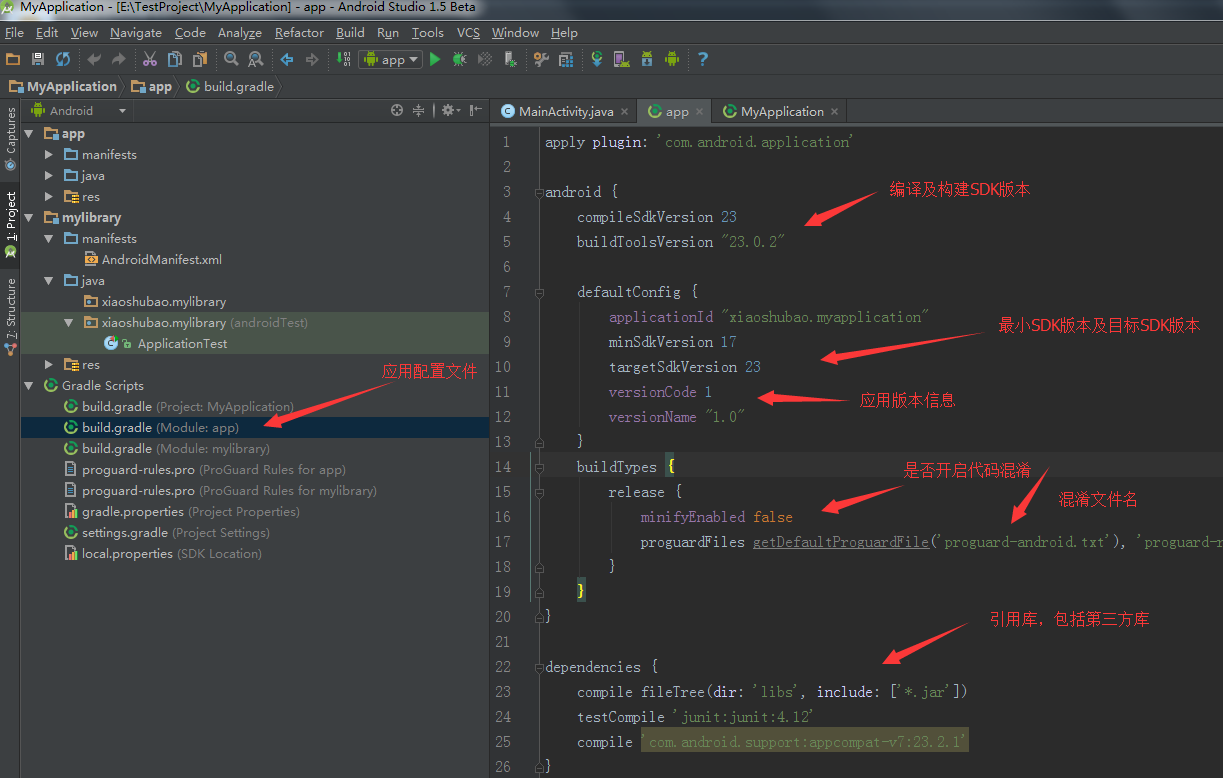 proguardFiles:混淆配置文件,一般就采用項目中默認的proguard-rules.pro文件。