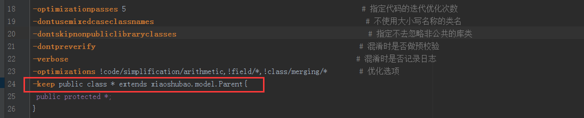 c:-keep public class XXX,特定類不混淆,例如: