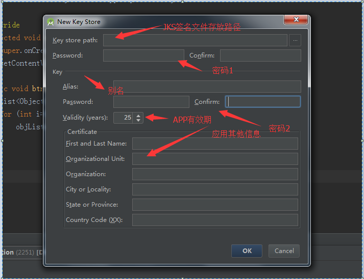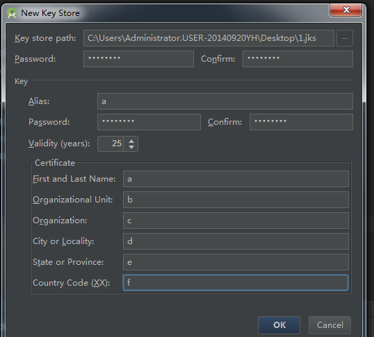(3)我們這裡演示創建新的JKS簽名文件,如下: