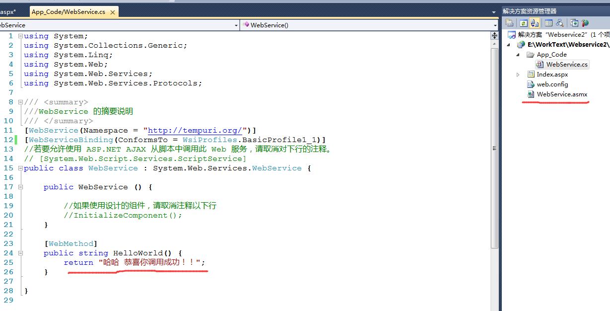 3.新建一個WebService 服務:便於測試 隨便返回幾個文字就好: