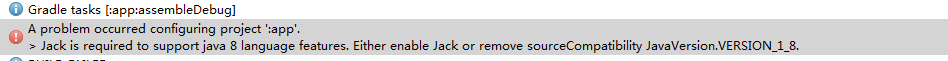 問題:在Android Studio2.1.2+Java8的環境下,引用Java Library,同時引用了dataBinding處於enable狀態,會導致編譯出錯,如下圖所示: