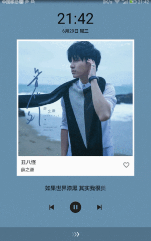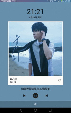 這時的她估計已經被廣場舞的歌曲騷擾了有10秒,續了10次命,這是我們程序員不願意看到的,所以有必要依靠我們靈活的雙手構建出自定義的音樂鎖屏頁,將切歌過程被壓縮為兩步:點亮屏幕和切歌,順便可以看看歌詞。如果再加個開啟和關閉自定義鎖屏的開關,就能完美解決用戶的痛點。