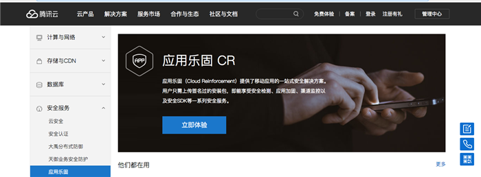 3.騰訊雲應用樂固鏈接https://www.qcloud.com/product/cr.html