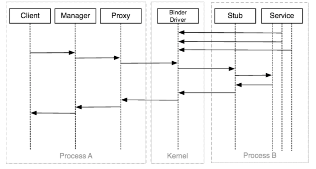 做過Android開發的同學可能有些體會,入門初期,工作內容主要是實現各式各樣的UI界面,以及實現應用的業務邏輯。在這個階段,我們會逐漸熟悉View系統,逐漸學會實現各種各樣的界面以及動畫效果。再往後,當我們想更深入的學習android系統,比如學習android四大組件的啟動過程、AMS、PMS等等時,都會遇到一個叫做Binder的東西。結合筆者的經驗,Binder可以說是深入理解Android系統的重要基礎。binder作為android系統進程間通信的機制,貫穿在方方面面。我們平時使用最多的startActivity、startService都是通過binder機制與AMS所在進程進行通信。本文主要對Binder機制的體系結構作簡要介紹,相信讀者看完後,會對binder有一個總體上的理解與把握。