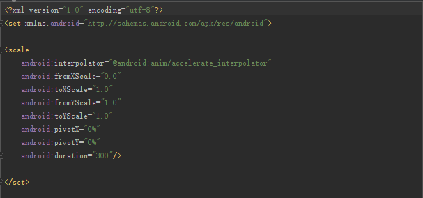 這是一個在res/anim/下的xml文件(anim是自己創建的文件夾)