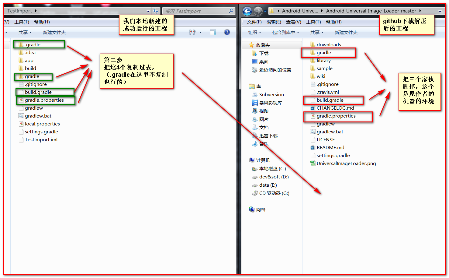 但是 .gradle 文件夾 (前面帶.的這個文件夾)如果我們從github上解壓下來的沒有這個就不用復制,當然你要復制也是可以的,不會報錯的