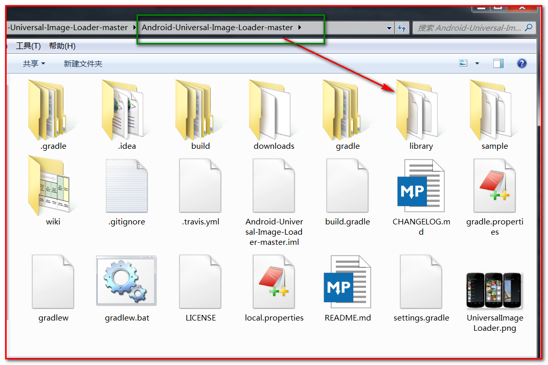 接下來看一下我們下載下來的庫解壓後的文件結構: