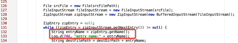 在使用java.util.zip包中ZipInputStream類的進行解壓操作時,進行檢查,示例如下: