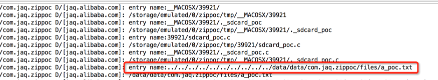 ZIP壓縮包文件中允許存在“../”的字符串,攻擊者可通過精心構造ZIP文件,利用多個“../”從而改變ZIP包中某個文件的存放位置,覆蓋替換掉應用原有的文件。如果被覆蓋掉的文件是是可.so文件、dex文件或者odex文件,輕則產生本地拒絕服務漏洞,影響應用的可用性,重則可能造成任意代碼執行漏洞,危害應用用戶的設備安全和信息安全。比如“寄生獸”漏洞,海豚浏覽器遠程命令執行漏洞,三星默認輸入法遠程代碼執行等。