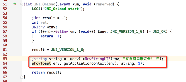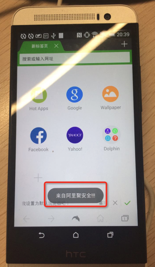 此so文件以“../../../../../../../../../../data/data/mobi.mgeek.TunnyBrowser/files/libdolphin.so”的形式存在惡意ZIP文件中。海豚浏覽器解壓惡意ZIP文件後,重新的libdolphin.so就會覆蓋掉原有的so文件,重新運行海豚浏覽器會彈出Toast提示框: