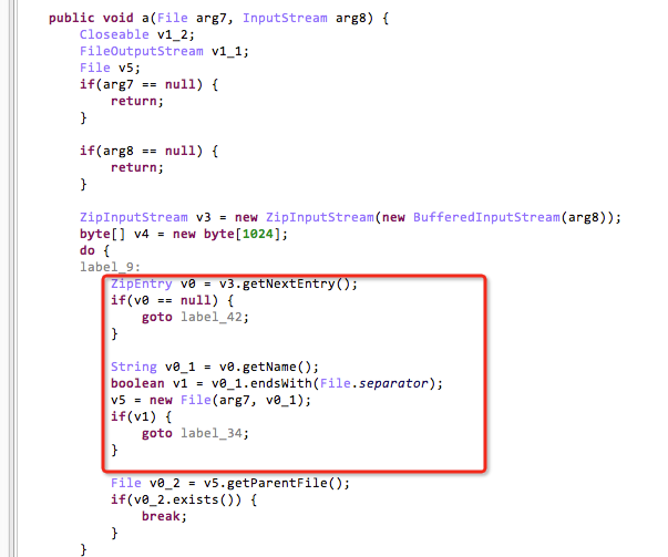 Java代碼在解壓ZIP文件時,會使用到ZipEntry類的getName()方法,如果ZIP文件中包含“../”的字符串,該方法返回值裡面原樣返回,如果沒有過濾掉getName()返回值中的“../”字符串,繼續解壓縮操作,就會在其他目錄中創建解壓的文件。