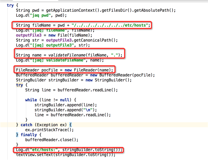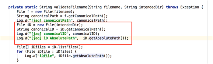 但是在JPCERT給出的示例代碼中,對validateFilename()的調用對於APP來說不會達到防止任意目錄遍歷的目的: