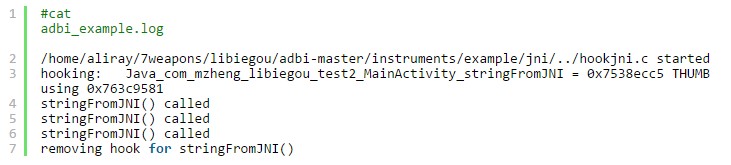 通過cat adbi_example.log我們可以看到hook過程中打印的log: