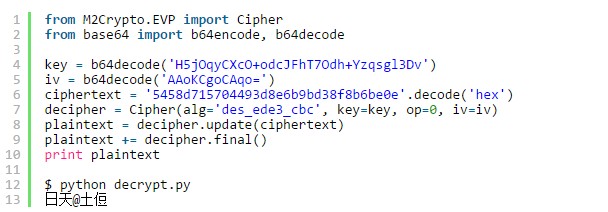 通過log,很容易就能看出來evilapk400使用了DES加密。通過log我們獲取了密文,Key以及IV,所以我們可以寫一個python程序來計算出最後的答案: