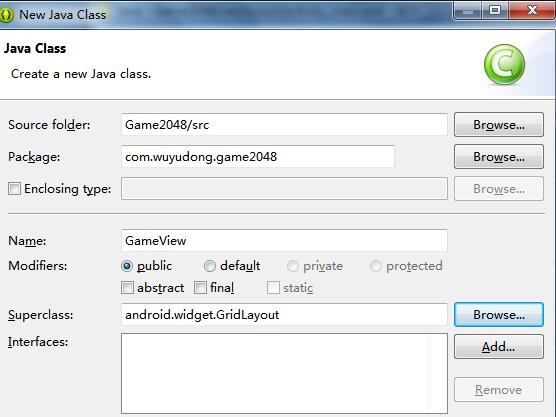新建類GameView,繼承自GridLayout