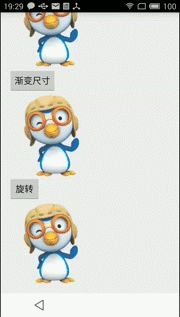 上面代碼含義為將View在2秒內橫豎方向增大一倍,第二次是在原來的基礎上縮小一倍,效果圖如下: