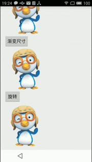 上面代碼是將三張圖片按照指定的順序,指定的時間播放,以達到動畫效果,如下圖: