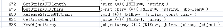 是不是瞬間清晰了很多?另外有人( 貌似是看雪論壇上的)還總結了所有JNIEnv方法對應的數字,地址以及方法聲明: