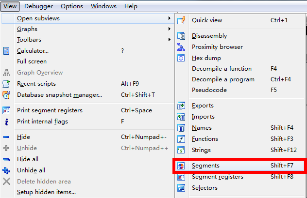我們知道so文件在被加載的時候會首先執行.init_array中的函數,然後再執行JNI_OnLoad()函數。JNI_Onload()函數因為有符號表所以非常容易找到,但是.init_array裡的函數需要自己去找一下。首先打開view ->Open subviews->Segments。然後點擊.init.array就可以看到.init_array中的函數了。