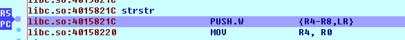 我們繼續分析自毀程序密碼這個app,我們發現該程序會用fopen ()打開/proc/[pid]/status這個文件,隨後會用fgets()和strstr()來獲取,於是我們在strstr()處下個斷點,然後讓hex view的數據與R0同步。每次點擊繼續,我們都會看到strstr傳入的參數。當傳入的參數變為TracerPid:XXXX的時候我們停一下。因為在正常情況下,TracerPid的值應該是0。但是當被調試的時候就會變成調試器的pid。