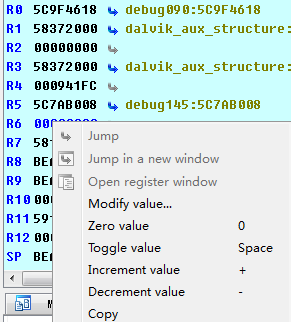 另外在ida動態調試過程中,除了內存中的數據可以修改,寄存器的數據也是可以動態修改的。比如說程序執行到CMP R6, #0。本來R6的值是0,經過比較後,程序會跳轉到4082A3FC這個地址。