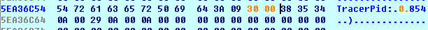 然後在這個地址上按三下”D”,將這裡的數據格式從字符轉化為指針形式。